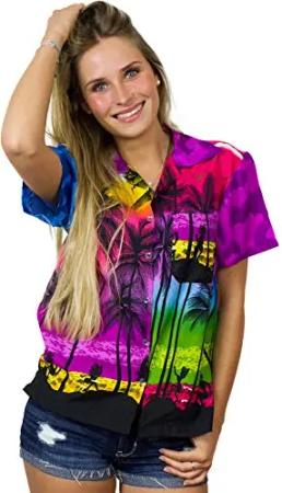 Funky-Hawaii-Bluse-Hemd, Damen, Kurzarm, Surf, Violett, S