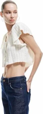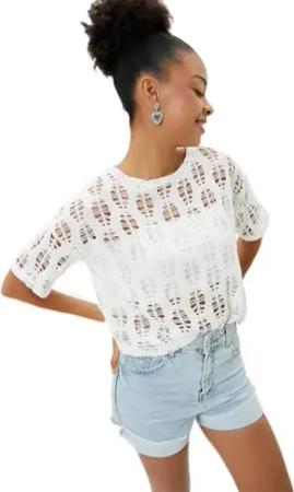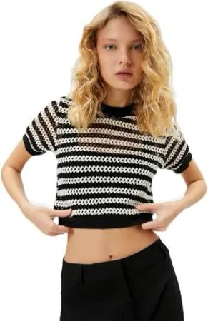 Crop Ajoure Sweater Short Sleeve Crew Neck