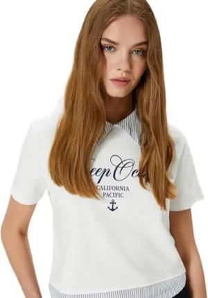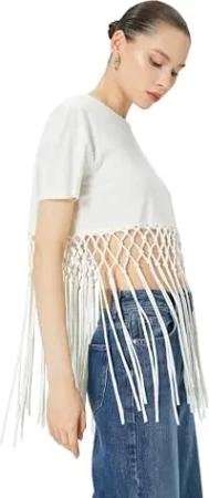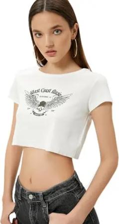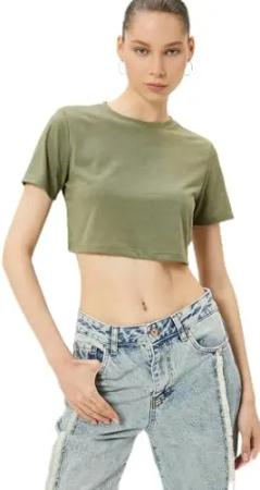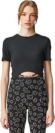 Women Metal Acessory Detail Short Sleeve Crop T-Shirt