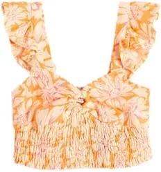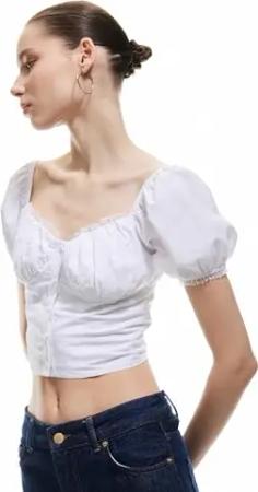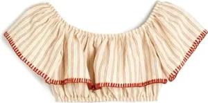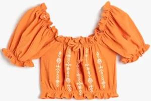 Girls Crop Blouse Ruffle Embroidered Shirred Detail Short Sleeve