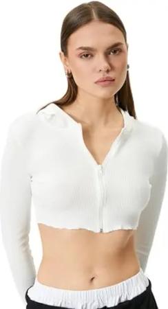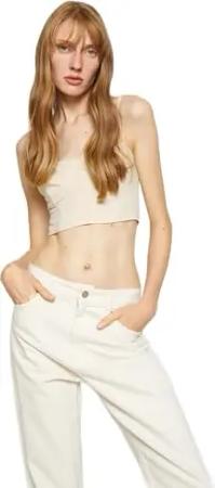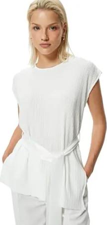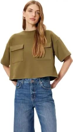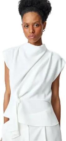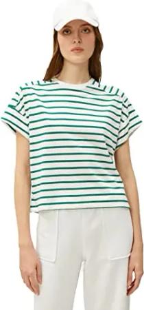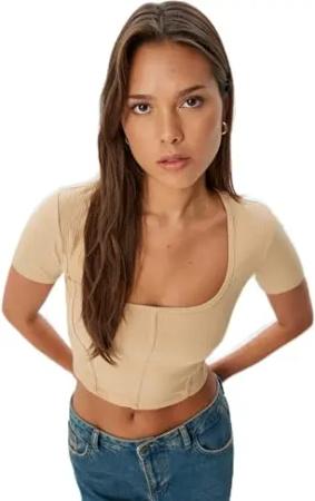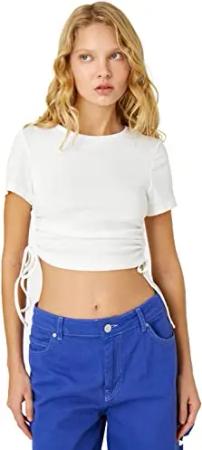 Damen Crop Shirred Short Sleeve T-Shirt, Ecru (010), S EU