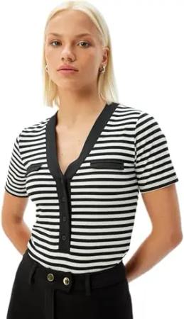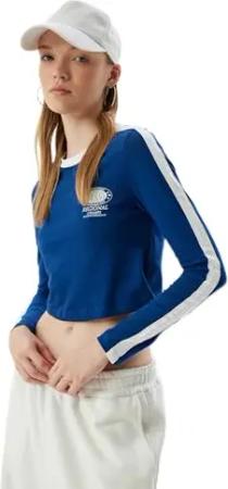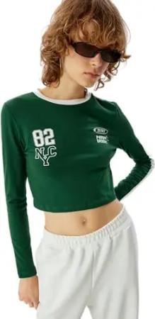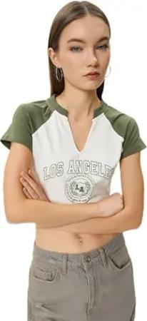 Varsity Crop T-Shirt V Neck Short Sleeve Cotton