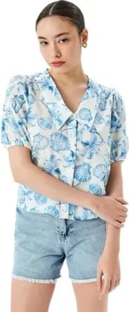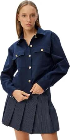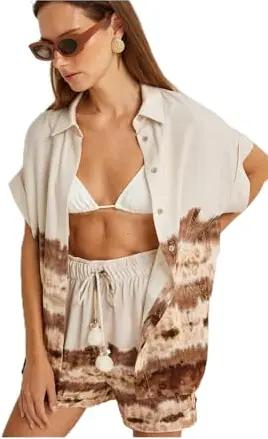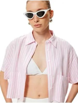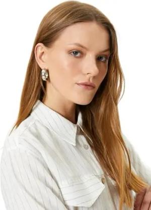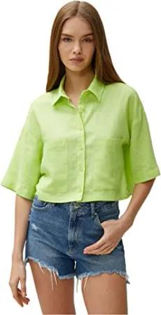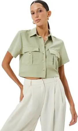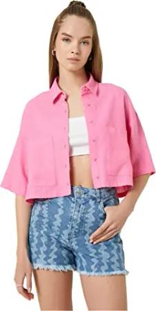 Women Linen Viskon Mix Pocket Detail Crop Shirt