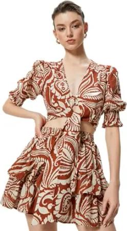 Women Far East Printed Short Sleeve Crew Neck Cotton T-Shirt