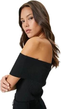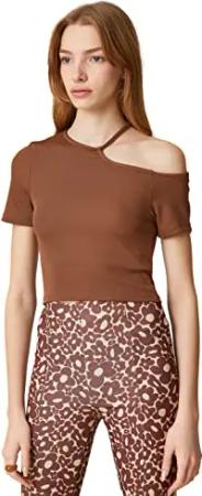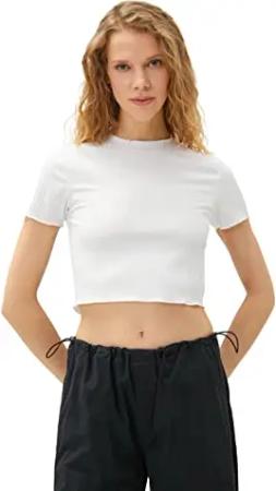 Women Crop T-Shirt One Shoulder Short Sleeve Ribbed