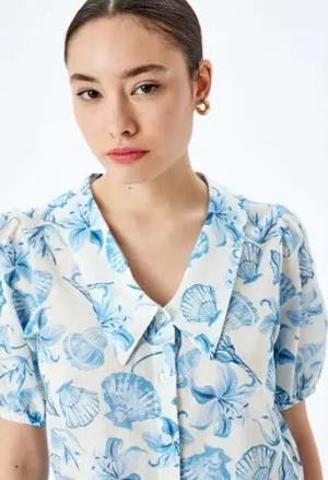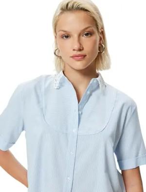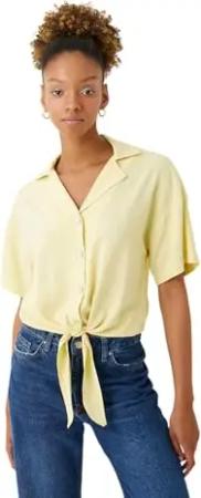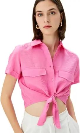 Women Crop Shirt Oversized Tie Detail Short Sleeve