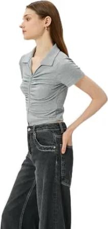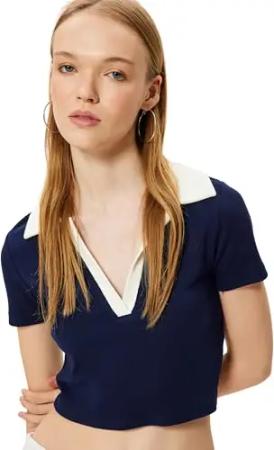Girls Polo T-Shirt Crop Short Sleeve Button Detail Slim Fit Cut