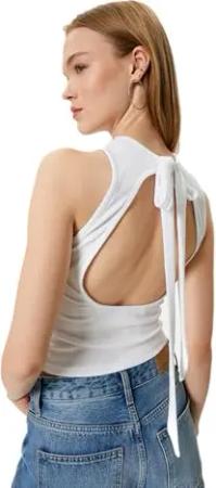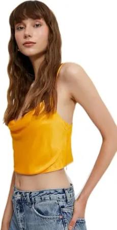 Women Spaghetti Strappy Satin Cowl Neck Crop Blouse