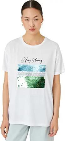 Women Crew Neck Short Sleeve Sequined Letter Printed T-Shirt