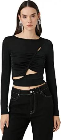 Women Long Sleeve Draped Cut Out Detail Blouse