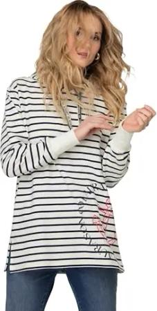 Ringelsweatshirt, Langarm, Kapuze helles azurblau 44+ 835653736-44+