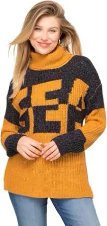 Pullover, Colorblocking Wording SEA, zweifarbig, Rollkragen, Langarm Oker XL 822410668-XL