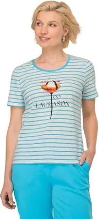 T-Shirt, Ringelmix, V-Ausschnitt, Halbarm, Oeko-TEX Made in Green türkisblau L 820504758-L