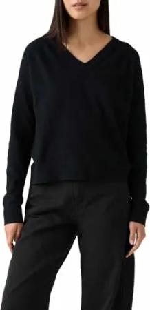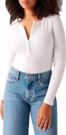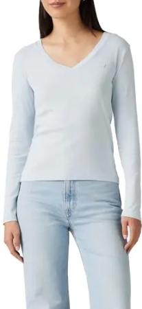 Damen Long-Sleeve V-Neck Baby Tee T-Shirt, White +, XS