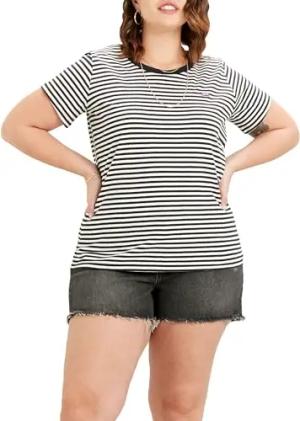 Damen Plus Size The Perfect Tee T-Shirt, Raita Stripe Caviar, 1XL