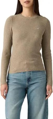 Damen Crew Rib Sweater Pullover Sweatshirt, Caviar, S