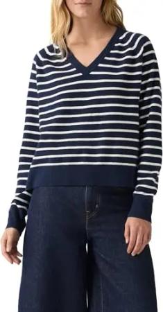 Damen Perfect V-Neck T-Shirt,Annalise Stripe Cloud Dancer,XXS