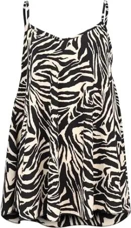 Damen Spaghettiträger Shirt Animal Print - weit geschnittes ärmelloses Top - weich & figurumspielend - Oversize Tanktop Blusenshirt 2312 - (Zebra)