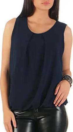 Malito – Damen Bluse ärmellos – leichte Tunika ohne Ärmel – Elegante Schlupfbluse mit Rundhals – lockeres Blusenshirt für Frauen Leo Print und Uni 6879 - (Dunkelblau)