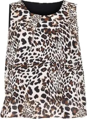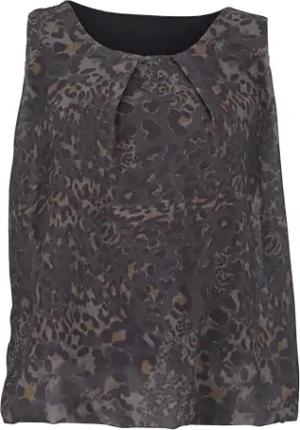 Malito – Damen Bluse ärmellos – leichte Tunika ohne Ärmel – Elegante Schlupfbluse mit Rundhals – lockeres Blusenshirt für Frauen Leo Print und Uni 6879 - (Leo-Dunkelgrau)