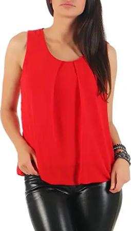 Malito – Damen Bluse ärmellos – leichte Tunika ohne Ärmel – Elegante Schlupfbluse mit Rundhals – lockeres Blusenshirt für Frauen Leo Print und Uni 6879 - (Rot)