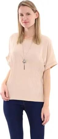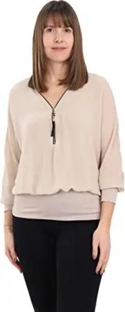Malito Damen Bluse im Fledermaus Look | Tunika mit Zipper | Kurzarm Blusenshirt mit breitem Bund | Elegant - Shirt 6297 (beige)
