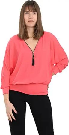 Malito Damen Bluse im Fledermaus Look | Tunika mit Zipper | Kurzarm Blusenshirt mit breitem Bund | Elegant - Shirt 6297 (Coral)
