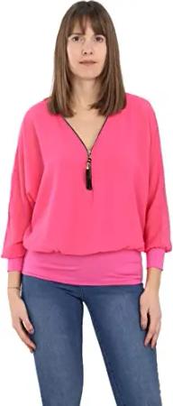 Malito Damen Bluse im Fledermaus Look | Tunika mit Zipper | Kurzarm Blusenshirt mit breitem Bund | Elegant - Shirt 6297 (pink)
