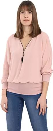 Malito Damen Bluse im Fledermaus Look | Tunika mit Zipper | Kurzarm Blusenshirt mit breitem Bund | Elegant - Shirt 6297 (rosa)
