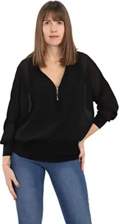 Malito Damen Bluse im Fledermaus Look | Tunika mit Zipper | Kurzarm Blusenshirt mit breitem Bund | Elegant - Shirt 6297 (schwarz)