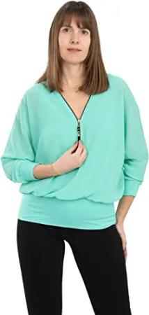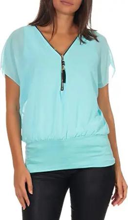 Malito Damen Kurzarm Bluse im Fledermaus Look | Tunika mit Zipper | T-Shirt mit breitem Bund | Shirt - elegant 6298 (türkis)