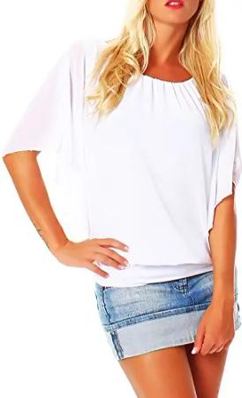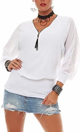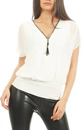 Malito Damen Kurzarm Bluse im Fledermaus Look | Tunika mit Zipper | T-Shirt mit breitem Bund | Shirt - elegant 6298 (weiß)