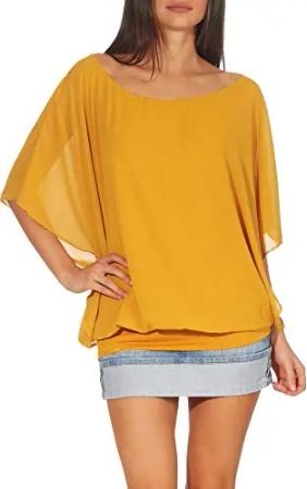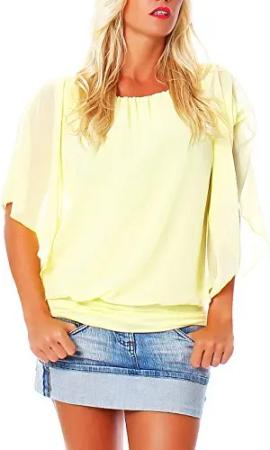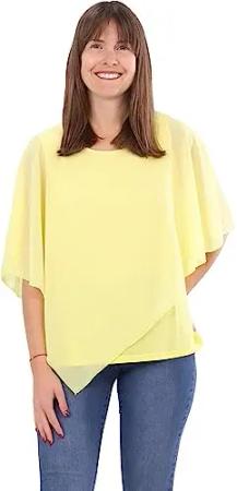 Malito - Damen Chiffonbluse - kaschierendes Fledermaus Shirt - asymmetrische Tunika mit lockerer Passform - blickdichte Bluse im Poncho Style 10732 (34-44 | gelb)