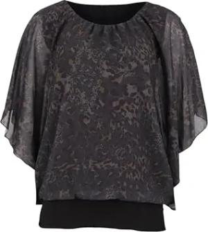 Malito – Damen Bluse in Fledermauslook – Tunika Kurzarm mit bequemen Schnitt – Elegantes Oversize Blusenshirt mit breitem Bund – Shirt Leo-Print & Uni 6296 - (Leo-Dunkelgrau)