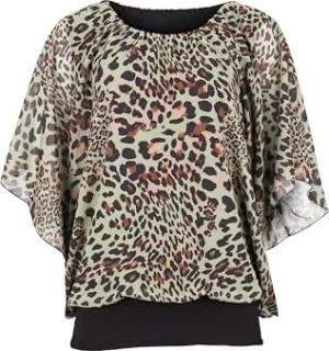 Malito – Damen Bluse in Fledermauslook – Tunika Kurzarm mit bequemen Schnitt – Elegantes Oversize Blusenshirt mit breitem Bund – Shirt Leo-Print & Uni 6296 - (Leo-Oliv)