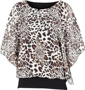 Malito – Damen Bluse in Fledermauslook – Tunika Kurzarm mit bequemen Schnitt – Elegantes Oversize Blusenshirt mit breitem Bund – Shirt Leo-Print & Uni 6296 - (Leo-Weiß)