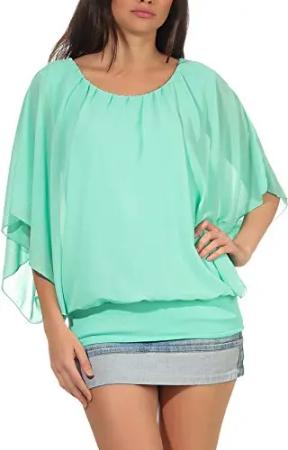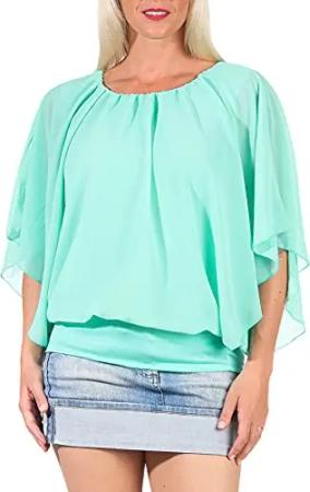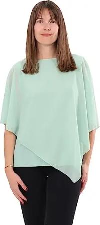 Malito - Damen Chiffonbluse - kaschierendes Fledermaus Shirt - asymmetrische Tunika mit lockerer Passform - blickdichte Bluse im Poncho Style 10732 (34-44 | Mint)