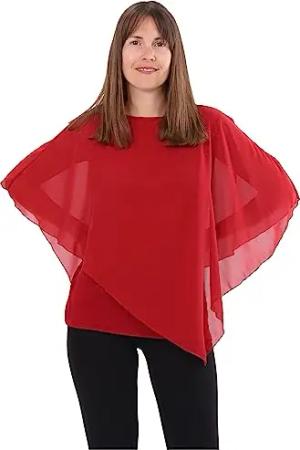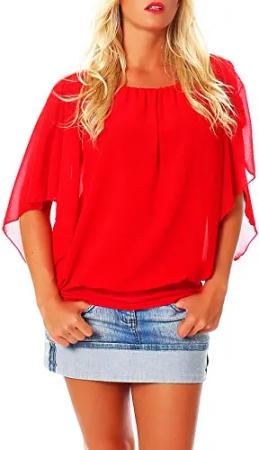 Malito - Damen Chiffonbluse - kaschierendes Fledermaus Shirt - asymmetrische Tunika mit lockerer Passform - blickdichte Bluse im Poncho Style 10732 (34-44 | rot)