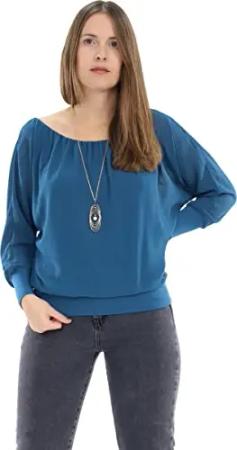 Malito – Damen Bluse mit Kette – langarmTunika mit elastischen Ärmelbündchen – Elegantes Oversize Blusenshirt mit breitem Bund 1133 (Petrol | Größe 34-42)