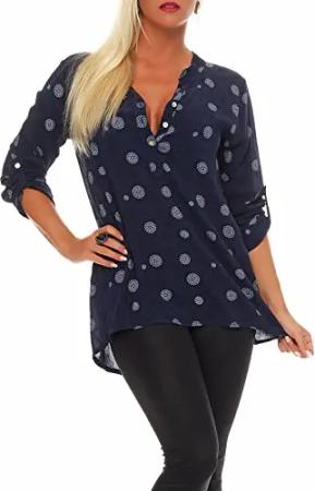 Malito Damen Bluse mit Punkten | Tunika mit ¾ Armen | Blusenshirt auch Langarm tragbar | Elegant - Shirt 3419 (dunkelblau)