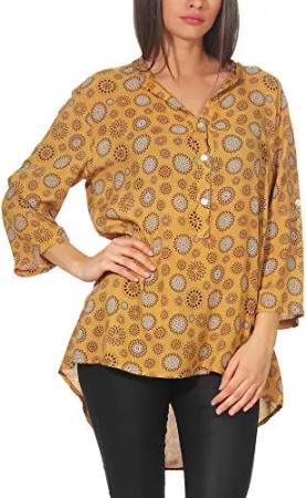 Malito Damen Bluse mit Print | Tunika mit ¾ Armen | Blusenshirt auch Langarm tragbar | Elegant - Shirt 6703 (dunkelgelb)