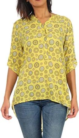 Malito Damen Bluse mit Print | Tunika mit ¾ Armen | Blusenshirt auch Langarm tragbar | Elegant - Shirt 6703 (gelb)