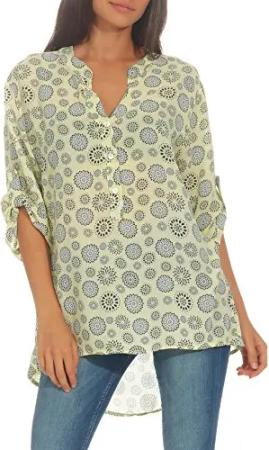 Malito Damen Bluse mit Print | Tunika mit ¾ Armen | Blusenshirt auch Langarm tragbar | Elegant - Shirt 6703 (hellgelb)