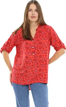 Malito Damen Bluse mit Print | Tunika mit ¾ Armen | Blusenshirt auch Langarm tragbar | Elegant - Shirt 6703 (rot)