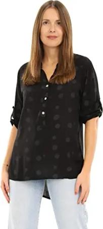 Malito Damen Bluse mit Punkten | Tunika mit ¾ Armen | Blusenshirt auch Langarm tragbar | Elegant - Shirt 3419 (schwarz)