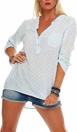 Malito Damen Bluse mit Punkten | Tunika mit ¾ Armen | Blusenshirt auch Langarm tragbar | Elegant - Shirt 3419 (hellblau)