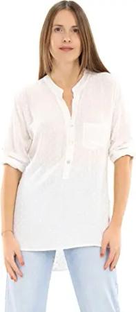 Malito Damen Bluse mit Punkten | Tunika mit ¾ Armen | Blusenshirt auch Langarm tragbar | Elegant - Shirt 3419 (weiß)