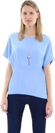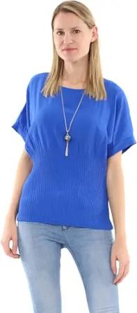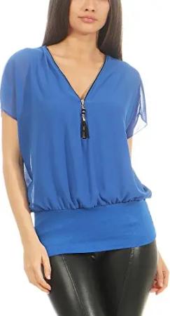 Malito Damen Kurzarm Bluse im Fledermaus Look | Tunika mit Zipper | T-Shirt mit breitem Bund | Shirt - elegant 6298 (blau)