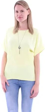 Malito Damen Blusenshirt mit Kette| kurzärmeliges Oberteil mit modischer Raffung | Hemdbluse - Tunika - modern 1144 (gelb)