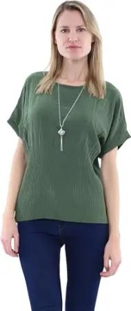 Malito Damen Blusenshirt mit Kette| kurzärmeliges Oberteil mit modischer Raffung | Hemdbluse - Tunika - modern 1144 (Oliv)